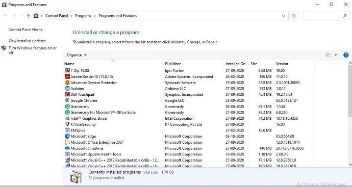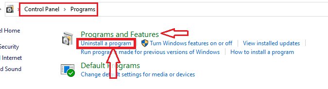 3. Seleccione Programas y características. Allí puede ver una opción de programa desinstalar.