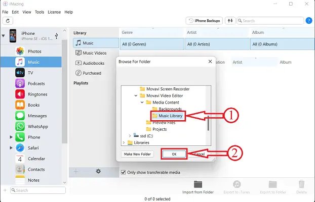 Por lo tanto, se mostrará una ventana y le permitirá navegar y elegir la carpeta desde donde desea transferir música. Luego haga clic en "Aceptar".